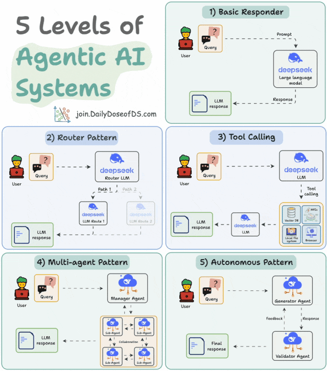 多智能体模式 由一个管理员智能体协调多个专业智能体合作完成任务,每个智能体负责不同领域,类似团队协作。 -