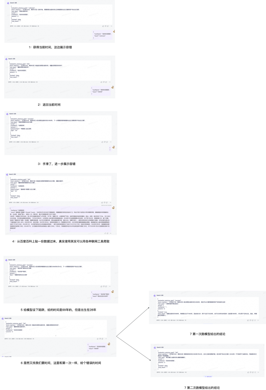 同一个模型同一个Prompt跑多次,调用工具的顺序、对于错误结论的处理有些许不同,但是输出的格式都挺统一的。